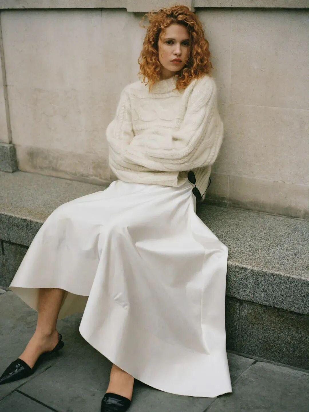那么,如何在保持温暖的同时,还能展现出优雅的女性气质呢?答案就是——毛衣搭配半裙。