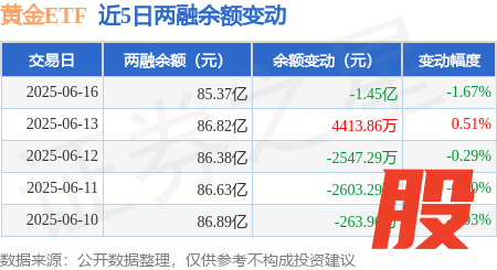 本站消息,6月16日,黄金ETF(518880)融资买入4.56亿元策略联盟,融资偿还6.02亿元,融资净卖出1.46亿元,融资余额85.37亿元。